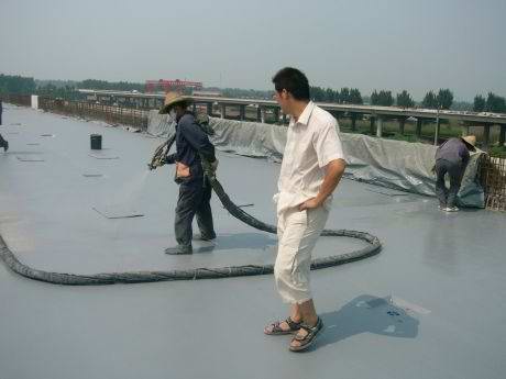 本品是一种A、B双组分、无溶剂、快速固化的绿色环保弹性防水材料,依据成膜反应基团不同而分为高弹喷涂(纯)聚脲防水涂料(JNC)和高弹喷涂聚氨酯(脲)(俗称半聚脲)弹性防水涂料(JNJ),按物理性能分为Ⅰ型和Ⅱ型。A、B组分在专用喷涂设备的喷枪内混合喷出,快速反应固化生成弹性体防水膜。 高弹喷涂(纯)聚脲防水涂料A组分是由端羟基化合物与异氰酸酯反应制得的半预聚物;B组分是由端氨基树脂和端氨基扩链剂组成的混合物,并不得含有任何羟基成份和催化剂,但允许含有少量颜料及分散的助剂。高弹喷涂聚氨酯(脲)(俗称半聚脲)弹性防水涂料A组分是由端羟基化合物与异氰酸酯反应制得的半预聚物;B组分是端羟基树脂或端氨基树脂与端氨基扩链剂组成的混合物,在B组分中可以含有用于提高反应活性的催化剂,允许含有少量颜料及分散的助剂。 本产品成膜时需要采用特殊专业施工机械喷涂成型,其优异的理化性能指标、便捷的施工工艺、防水防腐系统的整体性,以及环保性是其他任何一种传统防护材料及技术无法企及,被广泛地用于城市地铁、高速铁路、隧道桥梁、水利机电、海洋化工、军民两用项目之防水、防腐、耐磨“两防一耐”工程。编辑本段二、产品特点